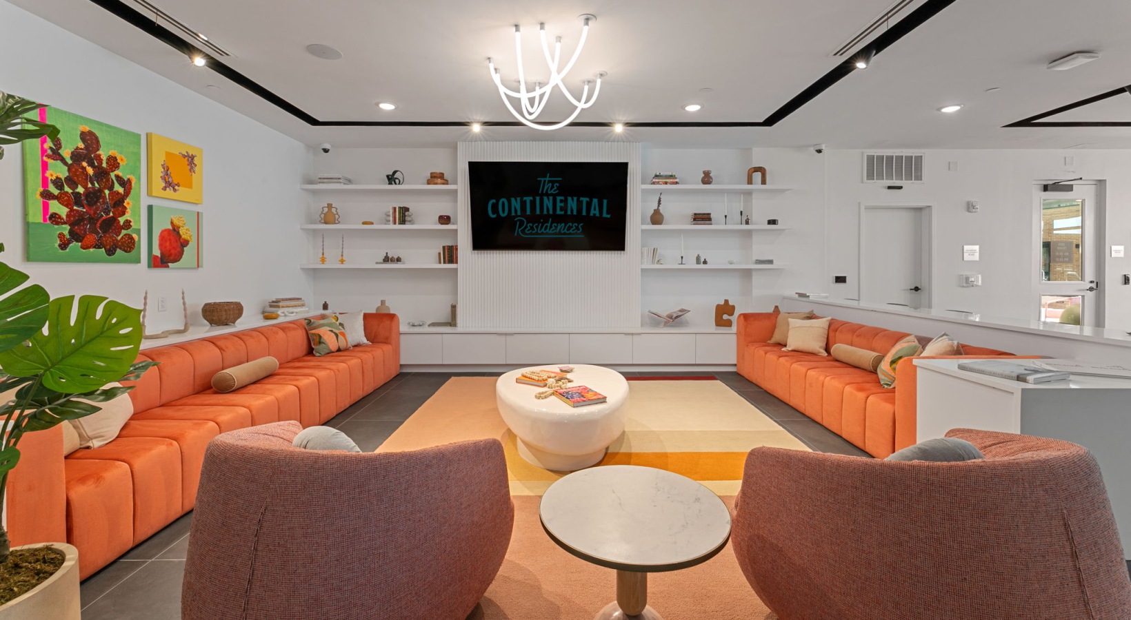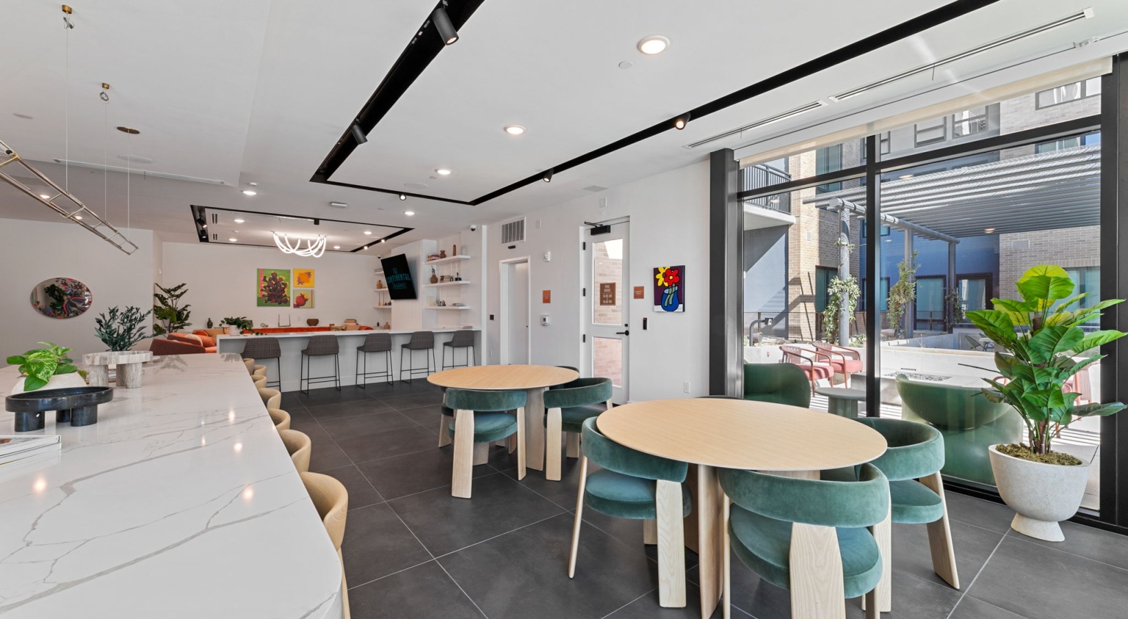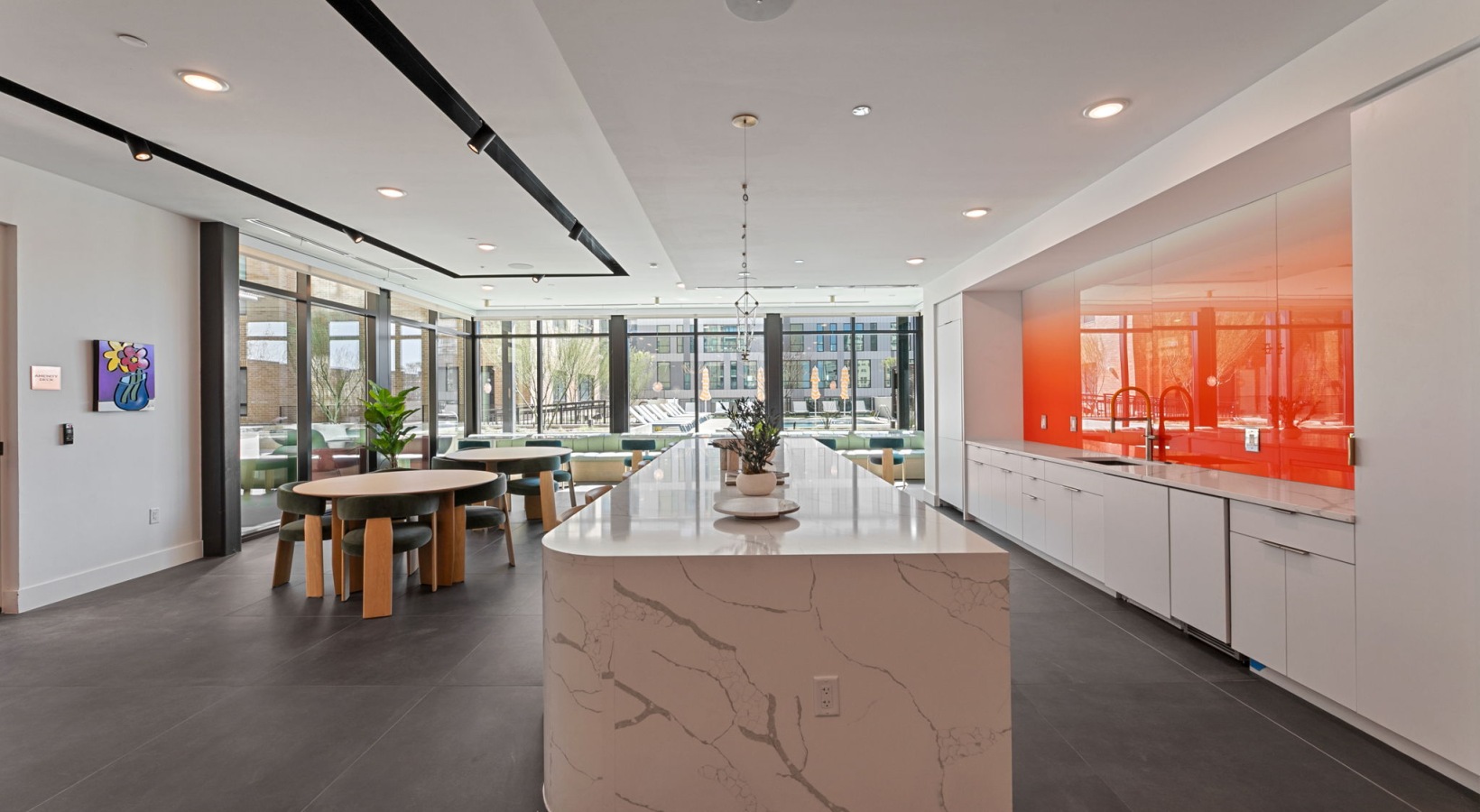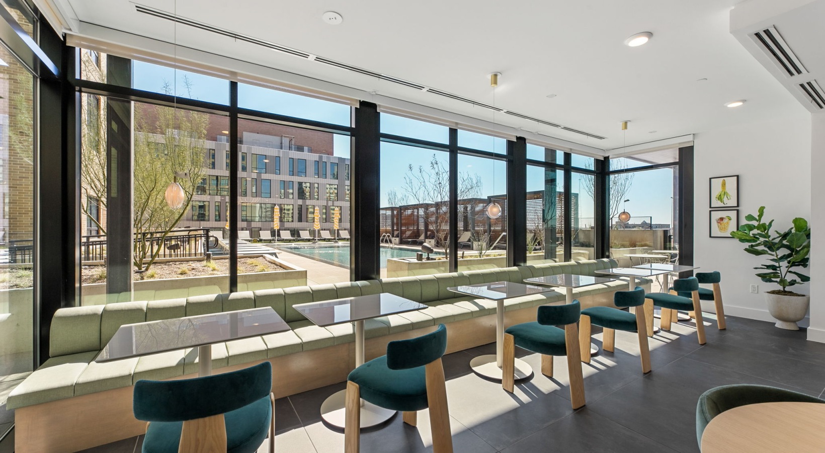 • Contemporary Resident Lounge with Natural Light and Outdoor Pool Access
